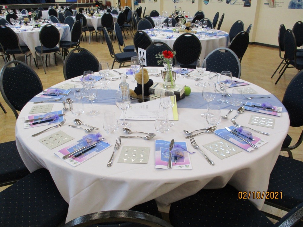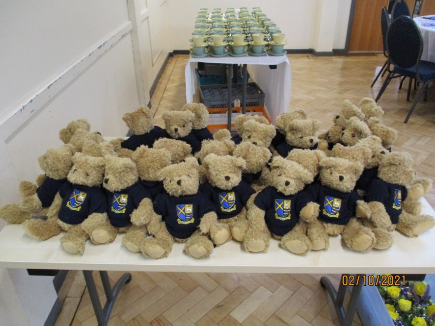 Inside the hall, the tables were beautifully decorated with books and flowers in conical flasks. The furniture had been hired in especially to make this lunch and meeting extra special. There was such a lovely atmosphere throughout the day and it did not matter that we did not know each other by name; we all had the school in common. The Head Students were fantastic ambassadors for the school and did extremely well in selling the teddy bears on behalf of the PTA. We did so well to hold the event with Covid still being around.