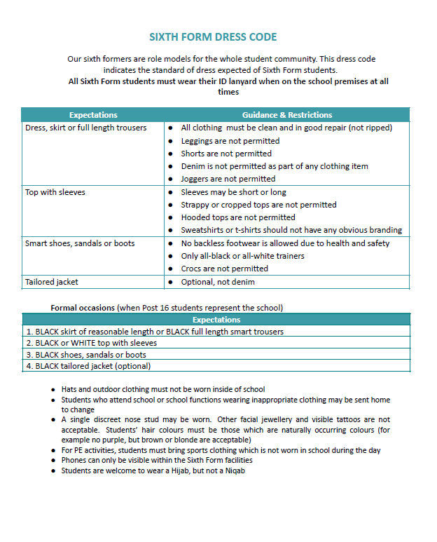 - Sixth Form students are allowed to attend 3 University Open days during the school week in an academic year