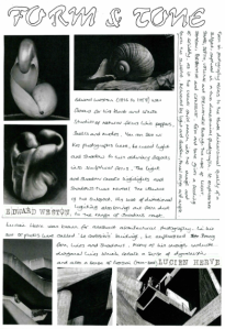 to galleries and exhibitions in order to experience work at first hand. Students must commit to five hours of photography preparation per week. Students must have access to a digital camera. The photography will be created digitally. Students will develop their knowledge of digital manipulation using our Photoshop Suite.