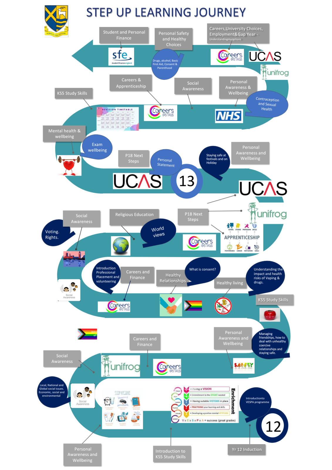 Step Up curriculum is a bespoke programme that provides students with an opportunity to study personal development and develop key life skills to equip young people in 21st Century Britain. Sessions are timetabled to take place for 1 hour each week and each week will cover a topic from one the following themes.